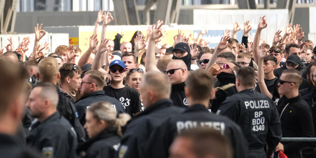 Neonazis zeigen beim CSD in Leipzig das Symbol für „White Power“, 17.08.2024 Foto: Sebastian Willnow/dpa