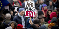AFD Verbot jetzt steht auf einem Schild in der Menge