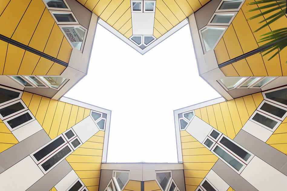Das komplette Neudenken einer Großstadt machte Rotterdam rasch zum Experimentierfeld einer Nachkriegsmoderne, die menschenfreundliche Lösungen für den Alltag suchte – die damals revolutionäre erste Fußgängerzone der Welt, die Lijnbaan, ist hier entstanden. Und seit den 1980er Jahren eben auch die dottergelb-grauen Kuben, von denen ein extragroßer „Superkubus“ heute als Hostel betrieben wird.