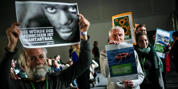 Protest beim Parteitag der Grünen 2023: Die Grünen tragen Verschärfungen der Asylpolitik mit und sind trotzdem die Blockierer Foto: Kay Nietfeld/picture alliance