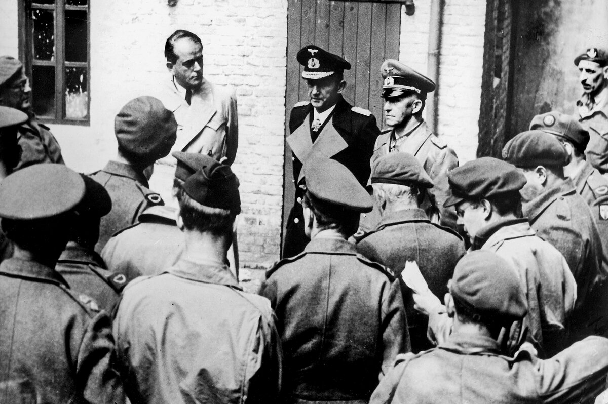 Und von hier verbreitete Dönitz den Mythos von der „unpolitischen“ Militärregierung, der „sauberen“ Marine, die mit den Verbrechen der Nazis nicht recht etwas zu tun gehabt habe – obwohl in seiner Regierung Männer waren, die unmittelbar für das System der Konzentrationslager verantwortlich waren.