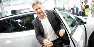 Will der Autoindustrie entgegenkommen: Wirtschaftsminister Robert Habeck vergangene Woche bei einem Besuch des VW-Werks in Emden Foto: Sina Schuldt/dpa