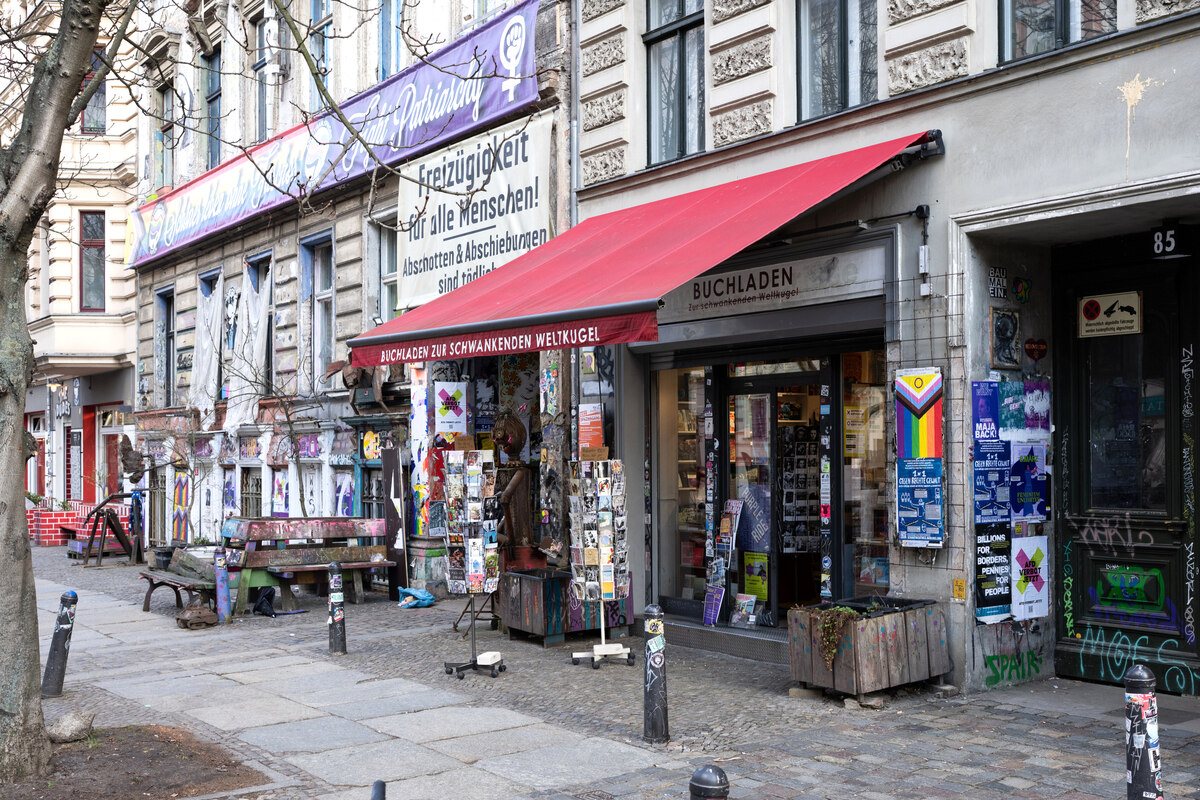 An der Kasse bimmelt das Telefon, Marion Liebhold greift zum Hörer. „Buchladen Zur schwankenden Weltkugel“, sagt sie. In letzter Zeit klingelt es fast ununterbrochen. Anrufe von Presse, Kund:innen und Interessierten häuften sich derzeit, meint Liebhold. Sie ist Co-Inhaberin der Buchhandlung, die seit 2012 in der Kastanienallee betrieben wird.