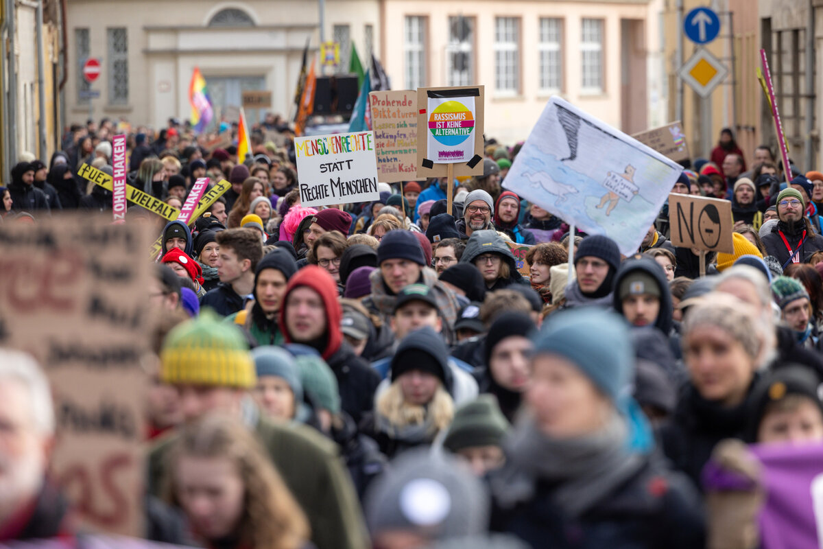 Organisiert hat die Proteste das Bündnis Buntes Weimarer Land. Vertreter von Gewerkschaften, Parteien, Vereinen und der Initiative „Omas gegen Rechts“ beteiligten sich. Auf Plakaten forderten sie unter anderem ein Verbot der AfD. Auftritte von Musikern und ein Familienfest ergänzten das Programm.
