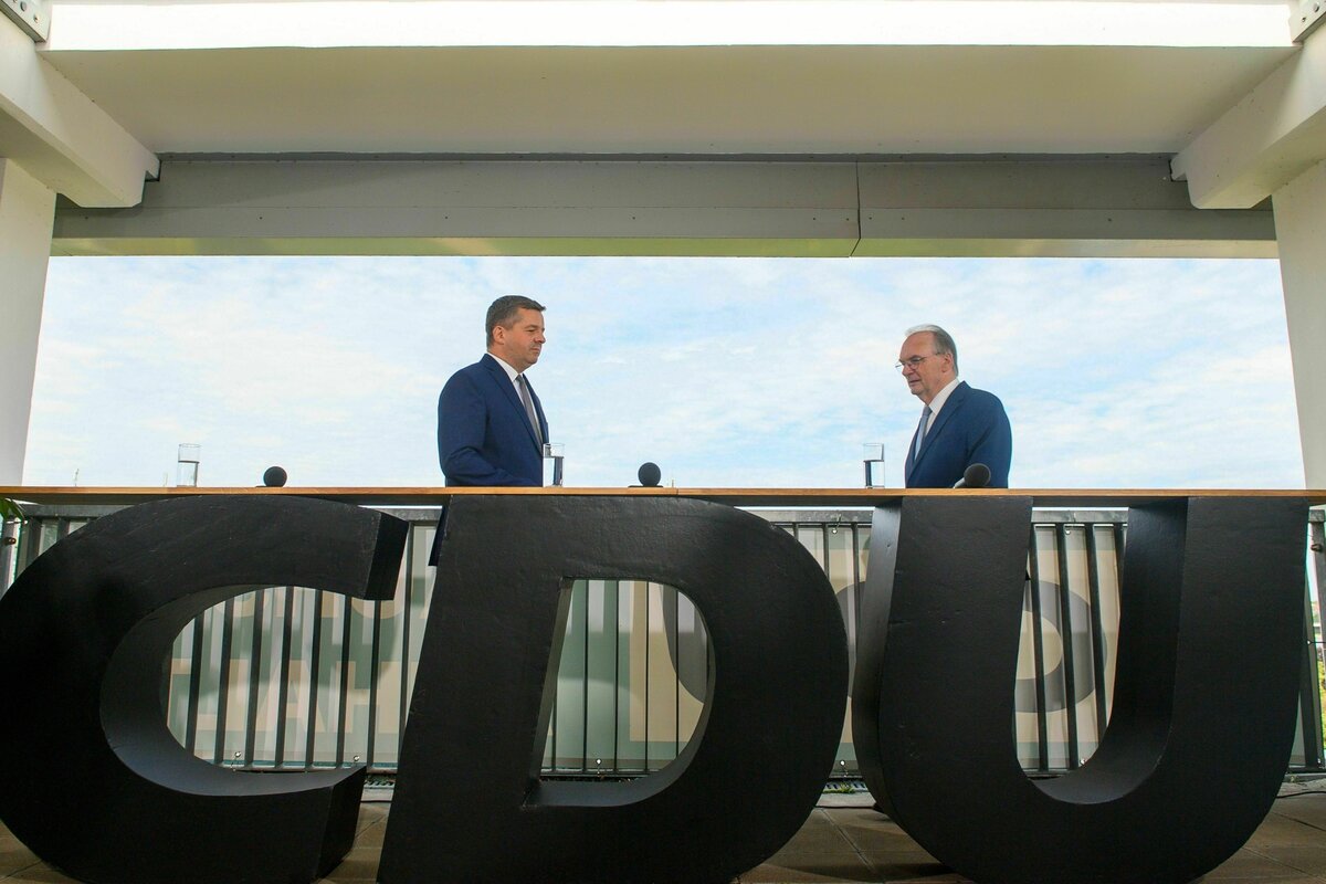 Zur offiziellen Verkündung am Donnerstagmittag stehen Schulze und Haseloff auf der Dachterasse der Parteizentrale in Magdeburg. Die Sonne scheint, Haseloff greift zum Mikrofon und beginnt mit einem Rückblick: Schon bei der letzten Landtagswahl habe der heute 71-Jährige eigentlich nicht mehr geplant, anzutreten. Er habe es trotzdem getan, um einen Generationswechsel vorzubereiten, um einen Nachfolger aufzubauen.