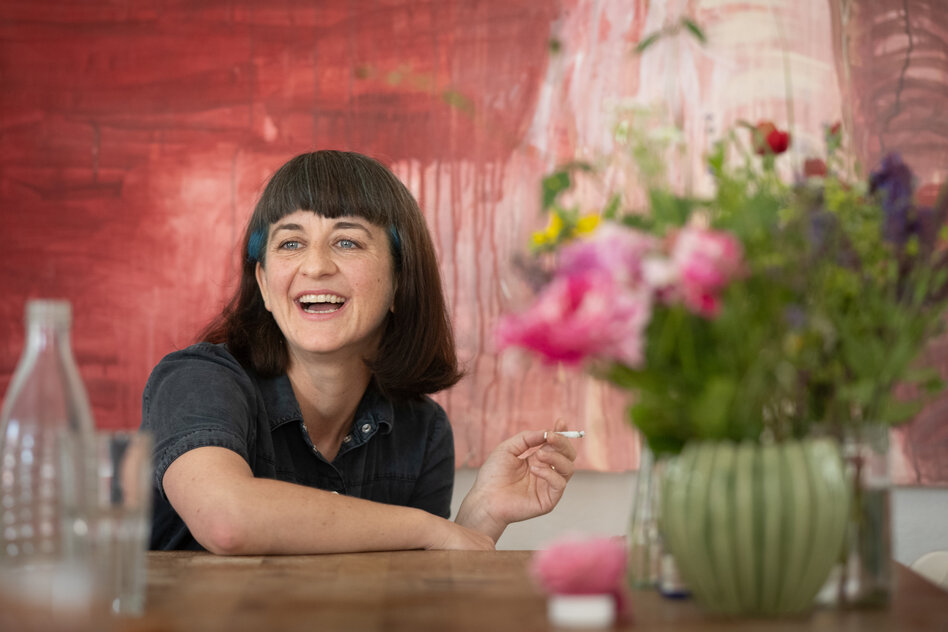 Widersprüche: Von Nürnberg macht sie sich auf nach Berlin. Sie sucht das, wo es zur Sache geht, das, wo die soziale Realität Reibung erzeugt. „Aber wenn ich heute am Hermannplatz bin, frage ich mich, wie ich das je ausgehalten habe.“ Der Hermannplatz ist ein Obdachlosigkeits- und Drogenbrennpunkt. „Man drückt die Armut und Verwahrlosung weg. Kopfhörer auf.“ In Lindau dagegen sehe sie das Gegen­teil, sehe das Unsoziale des Reichtums. Und sie kämpft für Alternativen zur Klassenfrage und zu traditionellen Rollenbildern. Obwohl sie das Stereotype selbst mal suchte, mit Ehemann und Kindern. Aber so weit war es in Berlin noch nicht. Dort springt sie erst einmal auf den ravenden Zug, nimmt alles mit, was es gibt, Partys, Demos, lange Nächte.