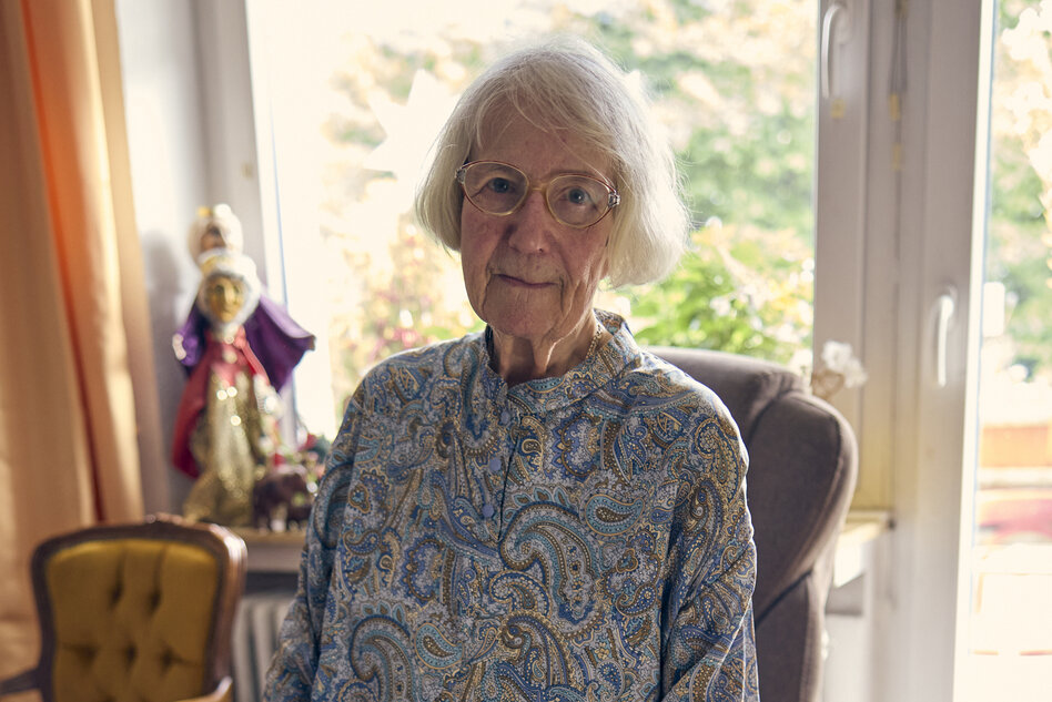 Drinnen: Einst hatte Annemarie Gerson eine Wohnung mit Arztpraxis auf 240 Quadratmetern, am Bahnhof im Stadtteil Elberfeld. Nachdem der Eigentümer sie herausklagt hatte – das Haus sollte in Eigentumswohnungen umgewandelt werden –, ging sie nach 44 Jahren, in denen sie als Ärztin gearbeitet hatte, in Rente und zog in eine Wohnung, die nur noch ein Drittel so groß war. Die Wohnung im Seniorenwohnheim, es ist ihre letzte Station, hat nur noch 42 Quadratmeter. Deshalb drängen sich die Möbel, die den Touch des letzten Jahrhunderts haben, stapeln sich die Erinnerungstücke. Sofa, Sessel, Regale. Handpuppen, Bücher, Engelsfiguren. Auf dem Klavier hat Gerson Fotos ihrer großen Familie aufgestellt. In einer anderen Ecke gezeichnete Porträts ihrer Eltern, ihrer älteren Schwester und ihrer Zwillingsschwester. Um diese kreisen ihre Gedanken.