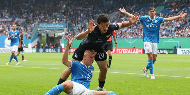 Bei Hertha BSC gegen Hansa Rostock gab es einen Grund die Hände hochzureißen Foto: IMAGO/Jan Huebner