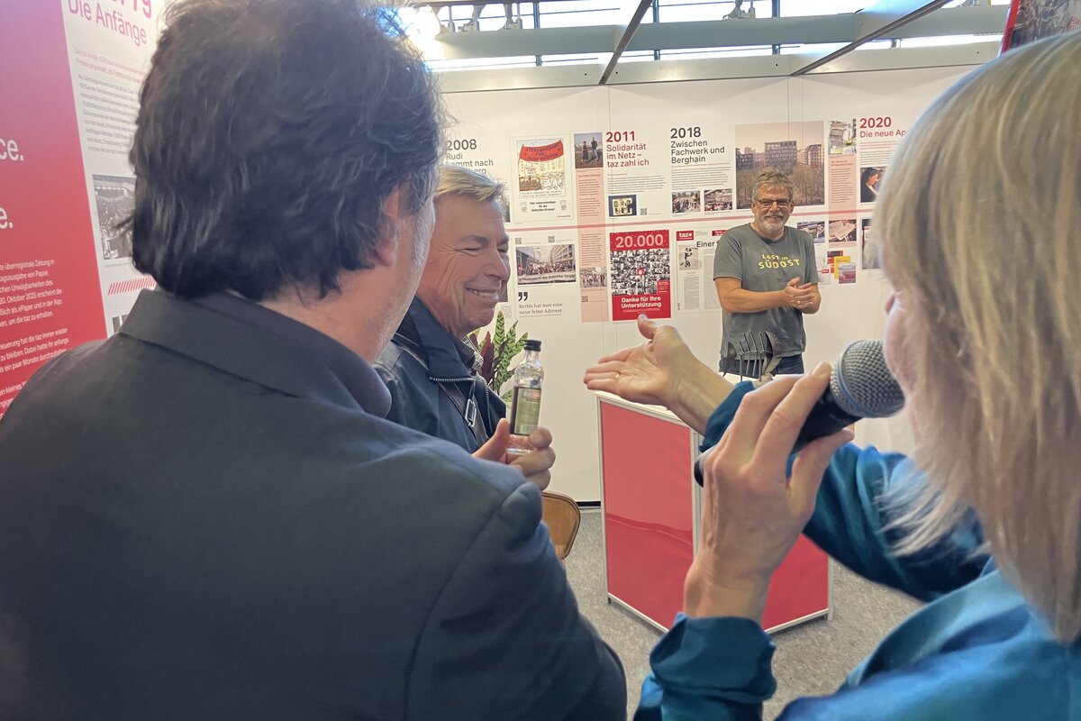 So schlugen sich also, so rasant wie redlich, das Exekutivorgan Harriet Wolff, der taz-Redakteur für dies und das und Wahrheitklubkandidat Andreas Rüttenauer und leider auch der neue Kulturstaatsminister Marcus Weimer aka Rattelschneck. Letzterer fungierte als notarielle Hilfskraft, ob auch alles mit Dingen zuging zu Messefrankfurt am Main. Und das ging es!