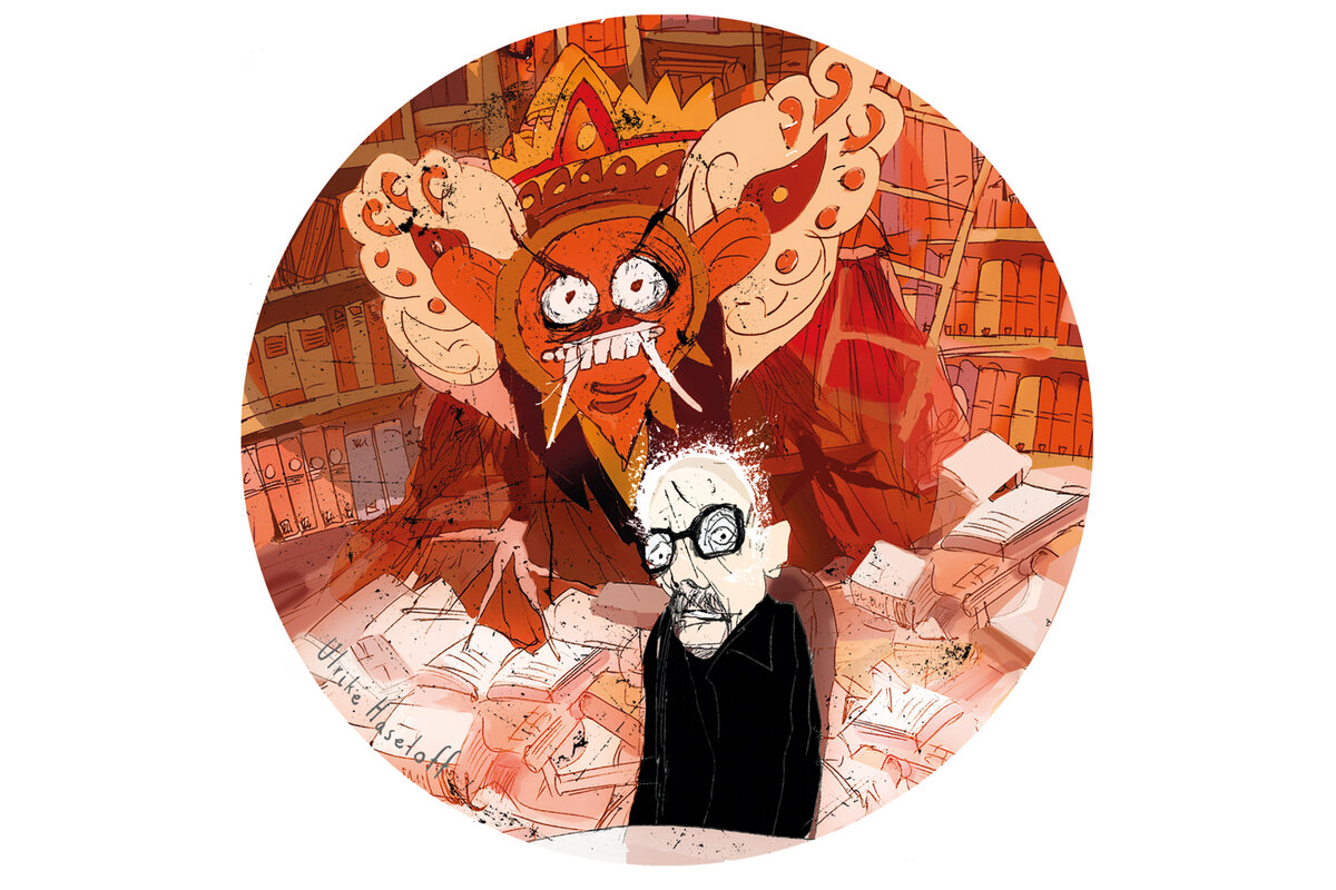 Der seriöse Verleger Sir Eustachius Estebylt lief in Halle 7 um sein Leben. Er war schweißgebadet und seine schlohweißen Haare standen ihm in allen Himmelsrichtungen zu Berge. Er hatte Todesangst: Direkt hinter ihm schwebte mit einer grauenhaften, zu einer pergamentartigen Fratze wutverzerrten philippinischen Maske das berüchtigte Buchmessenphantom. Mit einem gellenden Schrei stolperte Sir Eustachius Estebylt zunächst über seine eigenen Füße und fiel erst in einen herumstehenden Krummsäbel und dann ins Nichts.