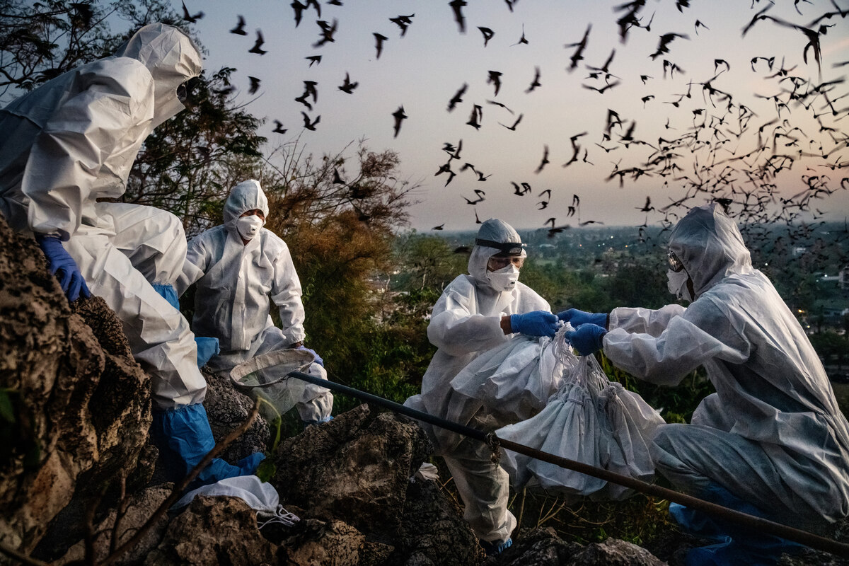 Letzteres passiert häufig, denn Fledermausguano wird in ganz Ostasien gesammelt und als Dünger eingesetzt. Eine eindrucksvolle Einstellung gegen Ende des Films zeigt eine Fledermaushöhle, in der zwei sehr verschiedene Gruppen von Menschen parallel ihrer Arbeit nachgehen: eine Gruppe von VirologInnen in Ganzkörper-Schutzanzügen und Atemmasken – und eine Gruppe von Guanosammlern, ungeschützt in Alltagskleidung.