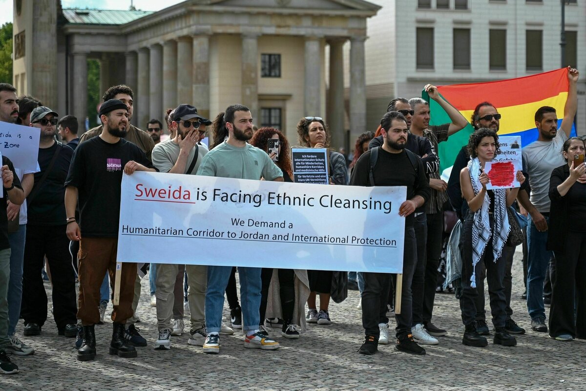 S onntagnachmittag, vor dem Roten Rathaus in Berlin wehen drusische Fahnen, Menschen singen Protestlieder. Es wirkt so friedlich, dass man sich erinnern muss, warum sie eigentlich hier sind: weil in Suwaida, im Süden Syriens, seit Wochen ihre Angehörigen belagert, ermordet und verschleppt werden.