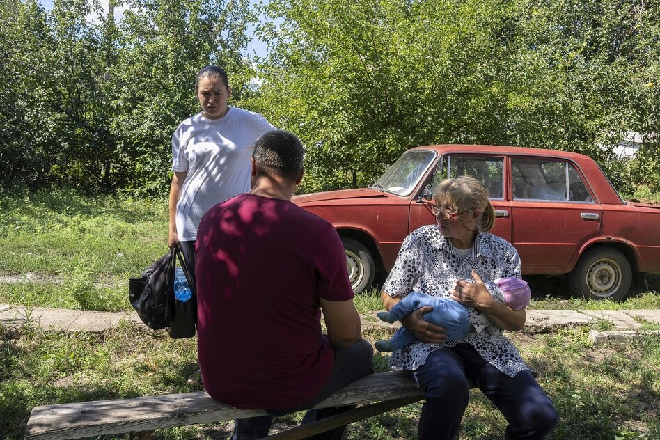 In Sorjane in der Region Dnipropetrowsk wartet der 43-jährige Oleksij seit dem Morgengrauen mit seiner Frau und seinen vier Kindern auf einen Bus. Davor hatte er versucht, nicht in Tränen auszubrechen, und sich darauf konzentriert, sein ganzes Leben in Taschen zu packen. Hinein passen jedoch nur Sachen für die Kinder. Oleksij hilft seiner Frau und dem Baby in den Bus und verabschiedet sich von seiner Mutter. Sie bleibt im Dorf, um auf die Tiere aufzupassen.