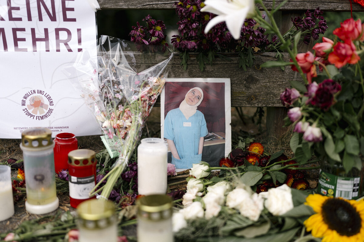 Die Algerierin wollte Krankenpflegerin werden und arbeitete bereits in einem Krankenhaus in Hannover. Menschenleben retten war ihr Lebenstraum. Nun durchbricht die kleine Gedenkstätte für die 26-Jährige die Vorstadtidylle in Arnum, etwa zehn Kilometer südlich von Hannover. Auch mehr als eine Woche nach dem Mord im Treppenhaus, stehen die An­woh­ne­r*in­nen offensichtlich unter Schock. Laut Staatsanwaltschaft Hannover laufen immer noch die Ermittlungen zu einem möglichen Motiv.