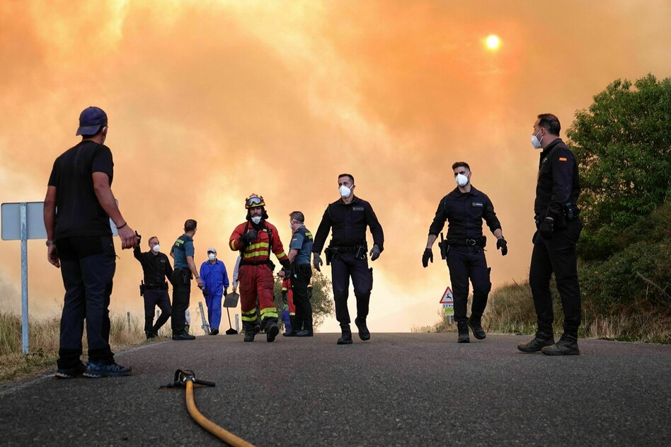 Die Hitzewelle trägt zum Ausmaß bei, die Veränderung der Niederschläge im Jahresablauf auch. Dieses Frühjahr regnete es viel – viel mehr als üblich –, während der Rest des Jahres trockener war als normal. Gestrüpp und Gräser wuchsen schnell und mehr als sonst, trockneten dann aus und bieten jetzt den Feuern reichlich Nährstoff. Die Teile von Kastilien und León sowie Galiciens, die jetzt abbrennen, gehören zu dem, was eigentlich als feuchtes, grünes Spanien gilt. Dort waren Tagestemperaturen bis zu 40 Grad und Nächte mit kaum unter 30 Grad bisher nicht normal. Dieses Jahr gab es sie – parallel zu den Waldbränden.