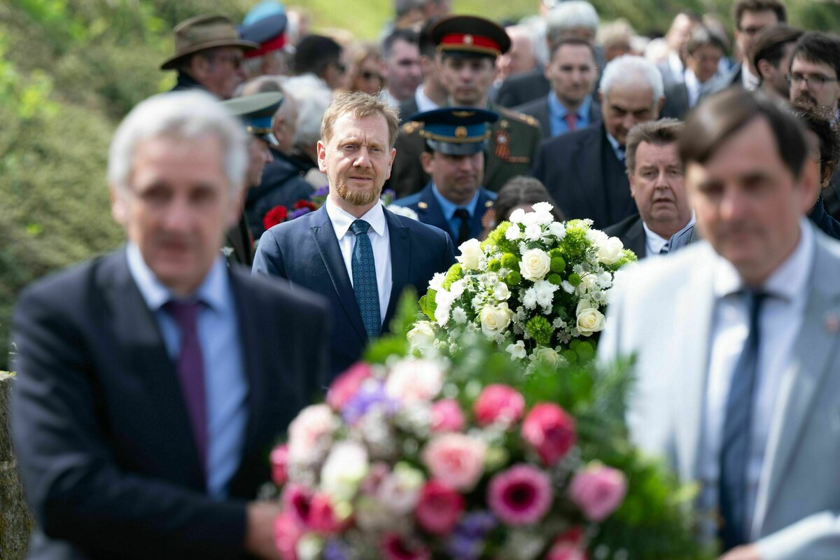 In Torgau drückt Michael Kretschmer in seiner Rede Bedauern darüber aus, dass keine Vertreter:innen der USA, der Ukraine, Georgiens oder Belarus beim Gedenken dabei sind. Der Grund sei wohl „die Anwesenheit des russischen Kollegen“, vermutet der Ministerpräsident. Doch trotz allem sei es wichtig, das Gedenken in Torgau zu begehen, schließt er seine Rede. „Das ist ein wichtiger Beitrag für die Demokratie, für die Freiheit, für den Frieden.“ Danach steigt Kretschmer vom Monument herunter, reicht Netschajew kurz die Hand und stellt sich ein paar Meter abseits von ihm in die Menge.
