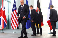 Zwei Bilderstrecken aus den vergangenen Wochen fassen den Zustand der Welt zum Zeitpunkt der US-Präsidentschaftswahlen zusammen. Die eine entstand in Berlin am 18. Oktober, als US-Präsident Joe Biden den deutschen Bundeskanzler Olaf Scholz besuchte und aus Großbritannien und Frankreich Keir Starmer und Emmanuel Macron dazustießen. Die offiziellen Fotos aus dem Kanzleramt zeigen die vier Führer des Westens in Posen der Unbekümmertheit, mal lächelnd, mal diskutierend, immer unter sich. Ein nichtoffizielles Bild fällt aus der Reihe: Scholz gestikuliert mit dem Rücken zur Kamera, Macron guckt ihn völlig entgeistert an, Biden schaut verständnislos in die Runde und Starmer tut so, als sei er nicht da.