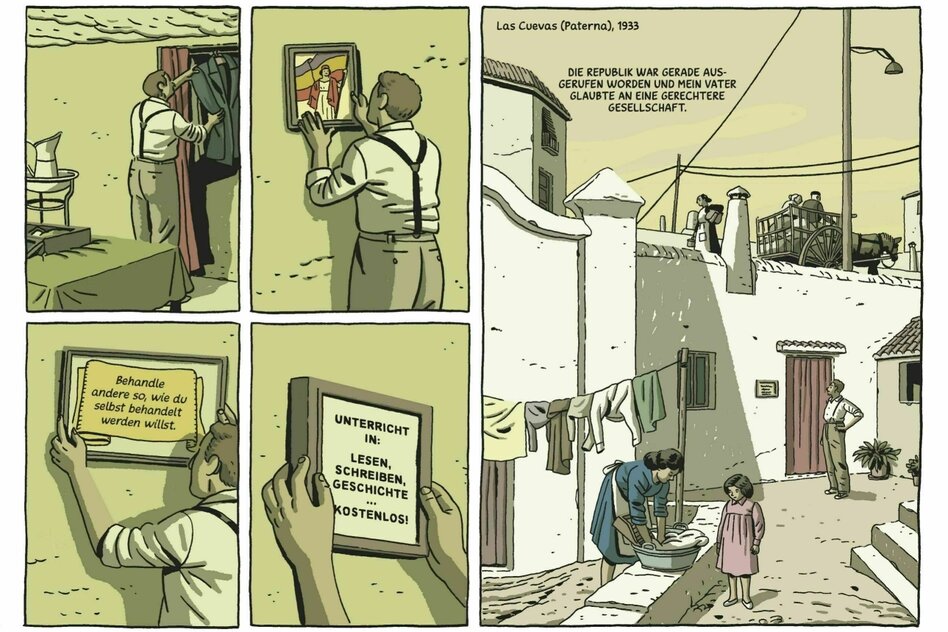 Was dies bedeutet, führt der Comic am Beispiel der damals über 80-jährigen Josefa Celda vor, der es 2013 nach einem zweijährigen und überaus hartnäckigen Kampf gegen bürokratische und private Widerstände gelang, auf dem Friedhof von Paterna, einer kleinen Stadt in der Provinz Valencia, das Skelett ihres 1940 nach einem Scheinprozess erschossenen Vaters José identifizieren zu lassen.