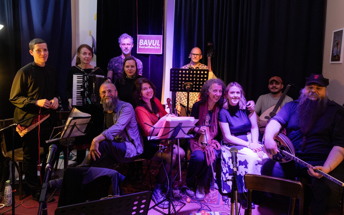 „Armut und Ehre“ ist einer der Songs, die das Rebetiko Orchestra Berlin für den 8. März vorbereitet hat. Mit John Stergiou und Eleni Poulou können bis zu 16 Menschen auf der Bühne agieren. Sie sind Musik- oder Naturwissenschaftlerinnen oder aber gehen noch zur Schule, sie kommen vom Jazz, von Balkan- und Klezmerbands oder Chorgesang. Sie sind weit gereist und stammen von griechischen Linken ab, die nach dem Bürgerkrieg 1946 bis 1949 in die DDR geflohen waren. Sie performen, singen, spielen Akkordeon, die Schalenhalslaute Tsouras, Gitarre, Akustikbass, Klarinette, Geige und Perkussion. Das Konzert wird von der experimentellen Senderkooperative Cashmere Radio übertragen.