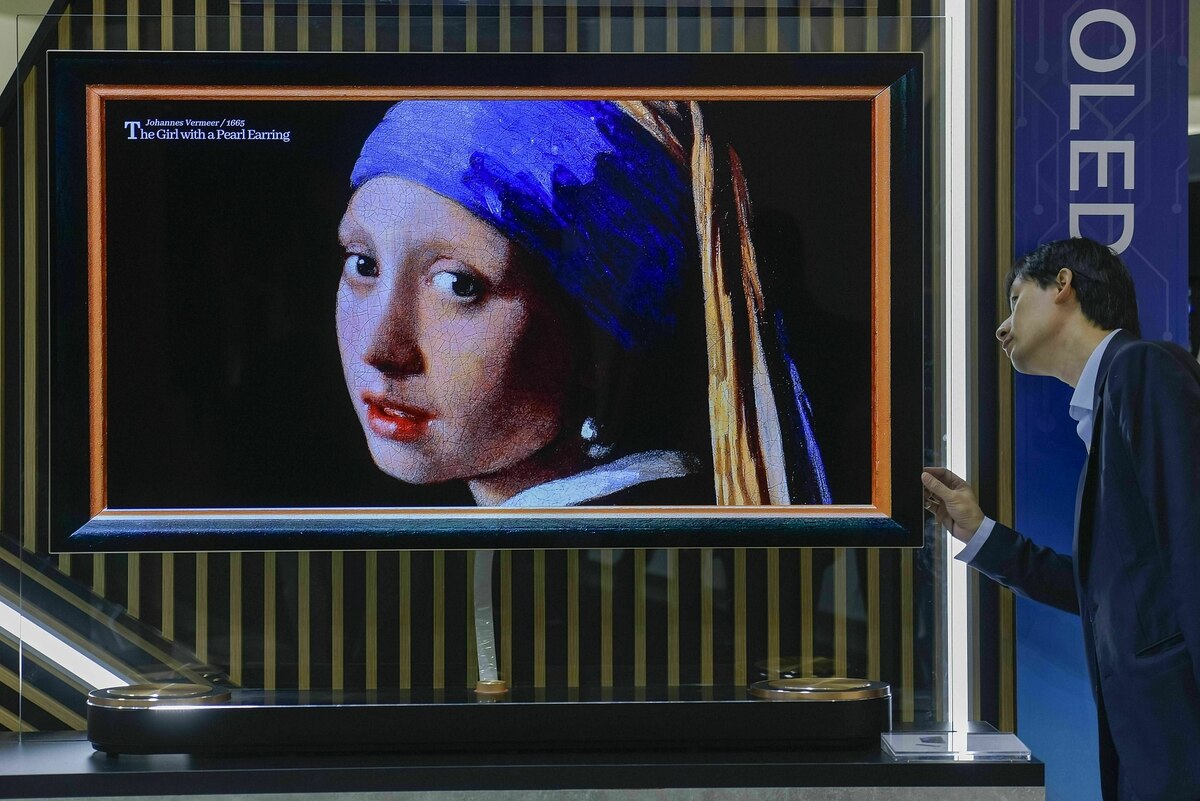 Die Industrie hat also gemacht, was sie am besten kann: aus einem Luxusproblem ein Geschäftsmodell. Fernsehgeräte, die gleichzeitig als unauffällig-neutraler Bilderrahmen funktionieren. Dazu buchbar das Kunst-Abo, Zugang zu einer fast unerschöpflichen Auswahl an Fotos und Gemälden. Heute Kandinsky, übermorgen van Gogh, dazwischen eine Burri-Fotografie, warum nicht? Ja, natürlich erreicht etwas wie 4K Ultra HD nicht annähernd so eine Aura wie Öl auf Leinwand, ein paar hundert Jahre alt. Aber dafür darf man ganz nah rangehen, ohne dass ein Alarm startet und streng aussehende Menschen in Uniform auf einen zurennen.