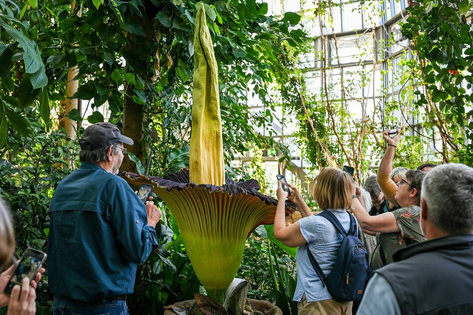 Die Titanenwurz blüht. Freudig nickt eine Frau, die im Botanischen Garten in Berlin dem Ausgang zustrebt. Ja, ja, natürlich habe sie sie gesehen, sie holt ihr Handy, zeigt Fotos. „Da, sehen Sie“, sagt sie mit spanischem Akzent. „Wir fahren nicht nach Indonesien an den Strand. Wir fahren hierher, um uns diese tolle Blüte anzuschauen, die doch eigentlich dort wächst.“ Ob es ein Weltwunder sei? „Unbedingt“, antwortet ihr Begleiter.