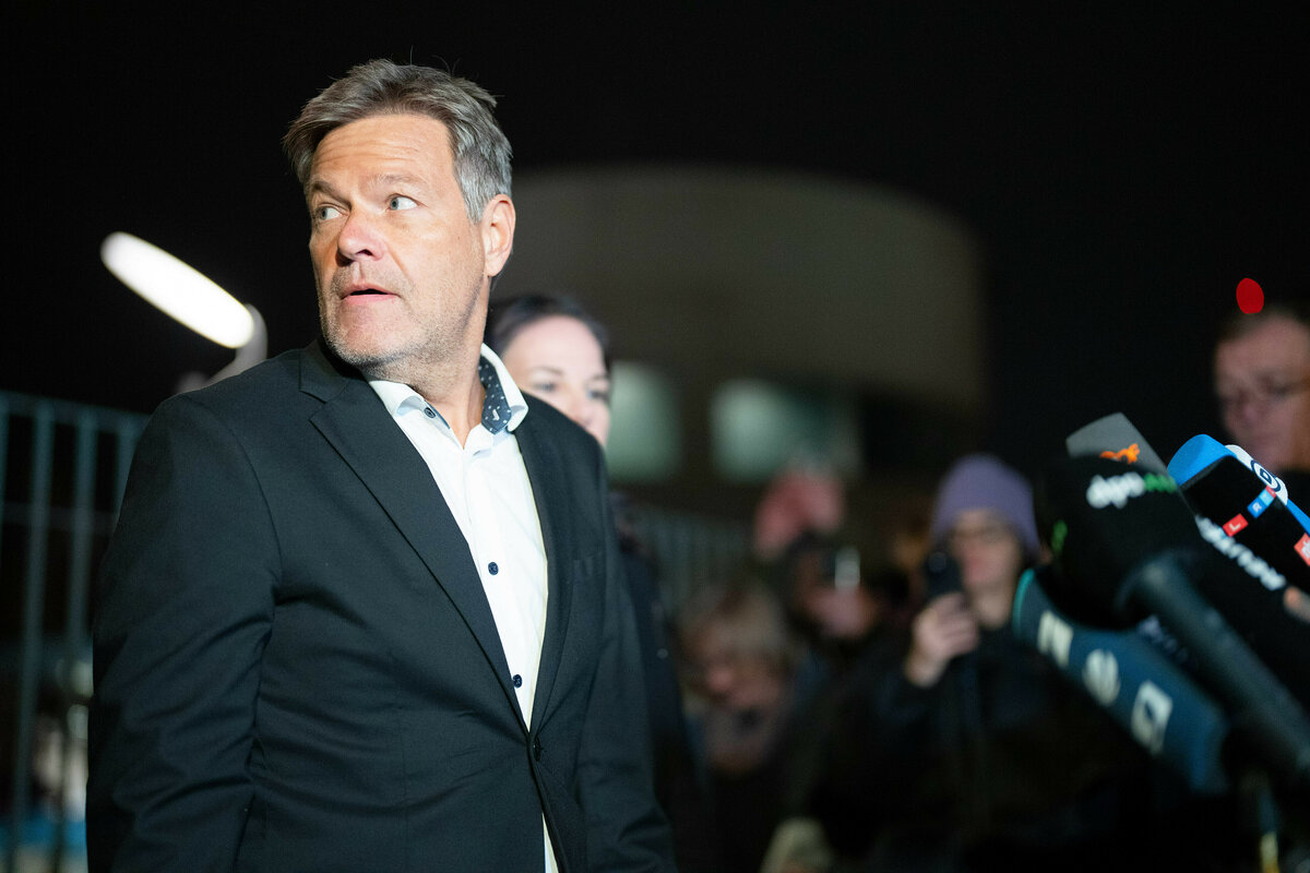 Aber während es die FDP mit ihren Forderungen auf den Bruch anlegte und der Kanzler ihr die Pistole auf die Brust setzte – für die Ukrainehilfe müsse nach der US-Wahl die Schuldenbremse gelockert werden –, traten die Grünen bis zum Schluss und darüber hinaus konzilianter auf. „Es gab verschiedene Optionen zur Schließung der Haushaltslücke, die auf dem Tisch waren“, sagt Habeck bei seinem Auftritt am Mittag. „Man hätte sich auch ohne Überschreitungsbeschluss einigen können.“