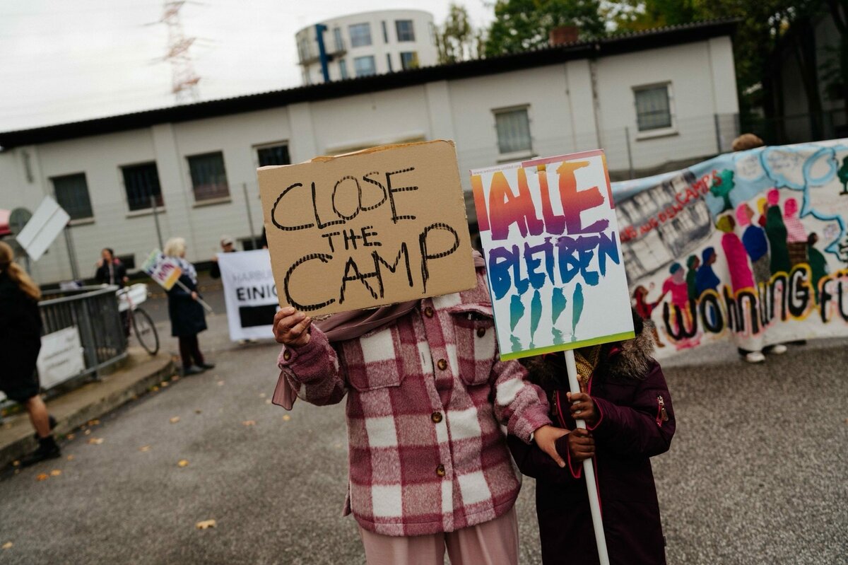 Rund einhundert Menschen hören ihm an diesem Sonntagmittag zu. Einige sind aus der Hamburger Innenstadt gekommen, andere wie Agha aus der Unterkunft. Die Be­woh­ne­r*in­nen haben die Demo unter dem Motto „Let’s resist together: Abolish the camp“ (Lasst uns gemeinsam Widerstand leisten: Schafft die Unterkunft ab) selbst organisiert, gemeinsam mit antirassistischen Initiativen. Vor einer Woche hatte ein leitender Mitarbeiter der Sicherheitsfirma Elb Security fünfzehn Bewohner über Nacht rausgeschmissen und ein Hausverbot gegen sie verhängt. Die Männer verbrachten die Nacht auf dem Gehweg.