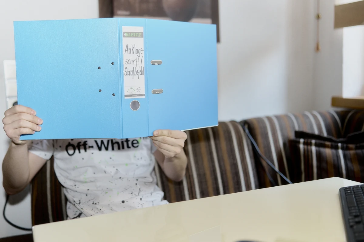Hauptsächlich rechtsextremistische Äußerungen landen auch auf F.s sehr breitem Bildschirm im Haus seiner Familie. Neben der Tastatur stehen fünf Aktenordner auf dem Tisch. Sie enthalten zum Beispiel die Eingangsbestätigungen, die die Staatsanwaltschaften dem Hassanzeiger nach einer Anzeige schicken. Daneben dicke Gesetzesbücher mit Kürzeln wie STGB (Strafgesetzbuch) und STPO (Strafprozessordnung) auf dem Rücken.