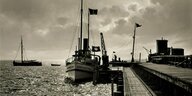 Die Landungsbrücke auf Langeoog mit dem Fährschiff „Kaiserin Auguste Victoria“, 1935 Foto: arkivi/picture alliance