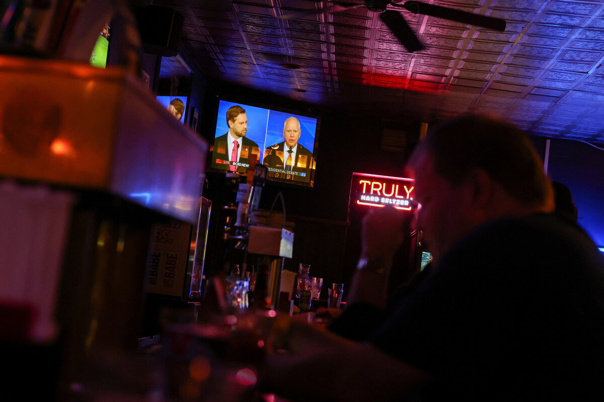 Mit anderen deutschen Stipendiat:innen bin ich hier eingeladen, um die Debatte der US-Vizepräsidentschaftskandidaten Tim Walz und JD Vance zu verfolgen. Im holzverkleideten und teppichbezogenen Raum sitzen Männer in Anzügen – wenn sie Zigarren rauchen würden, wäre das Bild perfekt, denke ich.