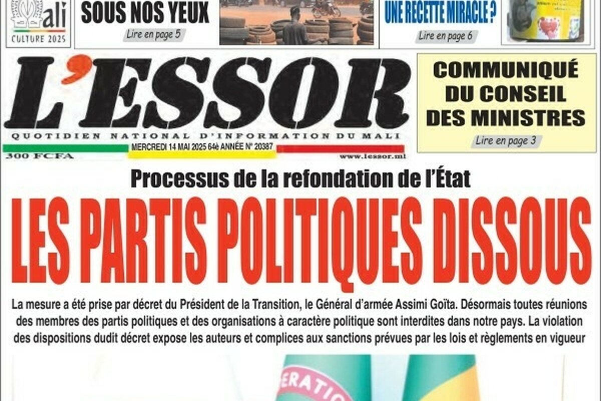 „Die Maßnahme hat Übergangspräsident General Assimi Goita per Dekret getroffen“, heißt es auf der Titelseite der Regierungszeitung L’Essor am Mittwoch über einem großen Foto von General Goita. „Fortan sind in unserem Land alle Versammlungen von Mitgliedern politischer Parteien und Organisationen politischen Charakters verboten. Die Nichteinhaltung der Bestimmungen dieses Dekrets setzt die Urheber und Komplizen der Strafverfolgung gemäß den geltenden Gesetzen aus.“