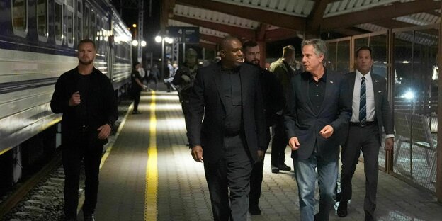 US-Außen- minister Antony Blinken (rechts) und der britische Außenminister David Lammy (links) auf dem Weg nach Kyjiw Foto: Mark Schiefelbein