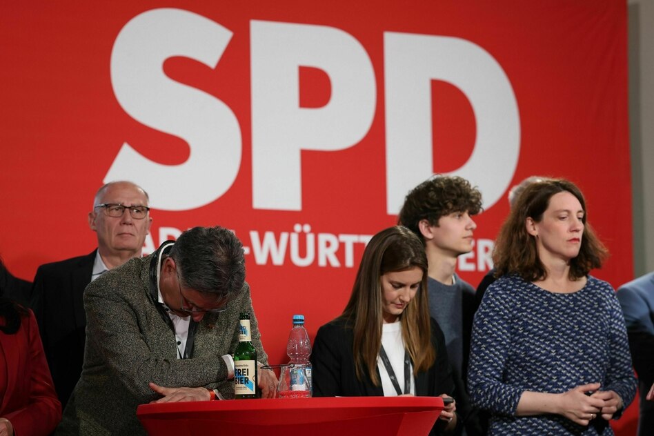 „Ich habe nie gedacht, jemals ein einstelliges Ergebnis kommentieren zu müssen“, räumt er ein. Die baden-württembergische SPD brauche angesichts der Zahlen des Abends eine Neuausrichtung. Auch in Berlin herrscht Fassungslosigkeit über dieses Resultat. „Das ist ein total bitterer Abend“, sagt SPD-Chef Lars Klingbeil.