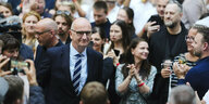 Rechnung aufgegangen: Dietmar Woidke nach Veröffentlichung der ersten Hochrechnungen am Sonntag Foto: Markus Schreiber/ap