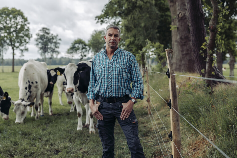 30 Kilometer entfernt lebt ein Wolfsrudel. In Hinrichs’ Landkreis Leer haben die Beutegreifer seit 2017 nach offiziellen Angaben 120 Nutztiere getötet. Es ist wohl nur eine Frage der Zeit, bis sich auch hier in Hesel, wo der Milchbauer wohnt, ein Rudel ansiedelt. „Ich bereite mich schon darauf vor, deshalb habe ich den Zaun gebaut“, sagt der 54-jährige Landwirtschaftsmeister. Seine Haut ist gebräunt von vielen Stunden Arbeit im Freien, die Haare trägt er kurz und akkurat gekämmt.