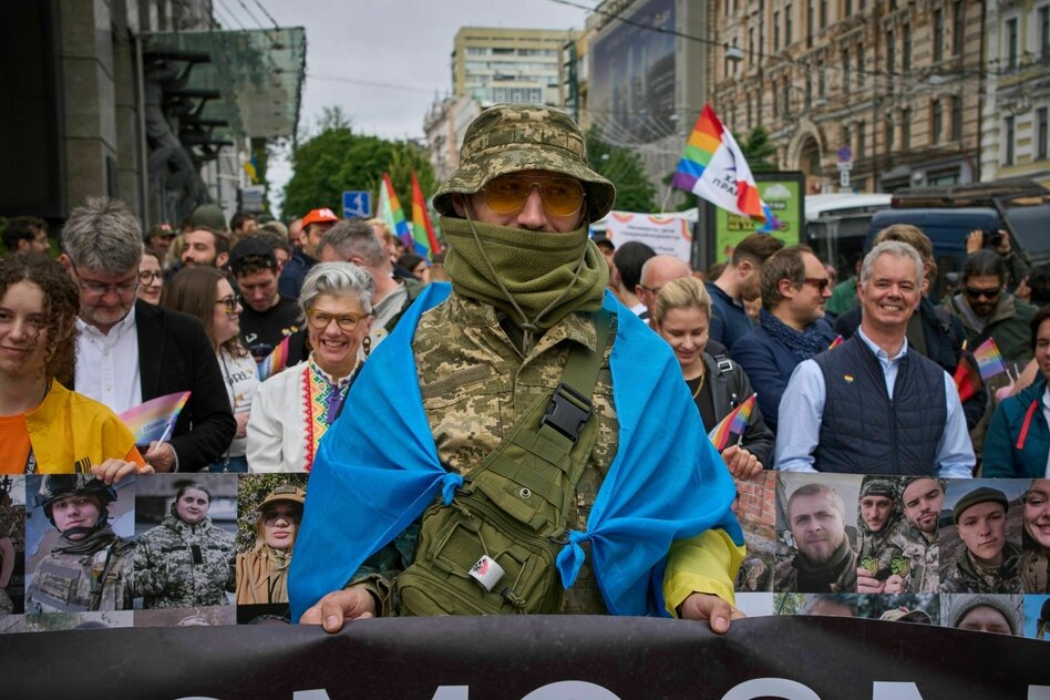 Dass Militärs die Queers unterstützen, ist für die Bewegung im Krieg besonders wichtig. Nach Russlands Invasion 2022 hatte sie schnell viel Zuspruch erfahren. Dass auch lesbische, schwule, bisexuelle und trans Personen in den Reihen der Armee gegen den Aggressor kämpfen, hatte beispielsweise einer Petition für die Ehe für alle überraschend Millionen von Unterstützungsunterschriften gebracht.