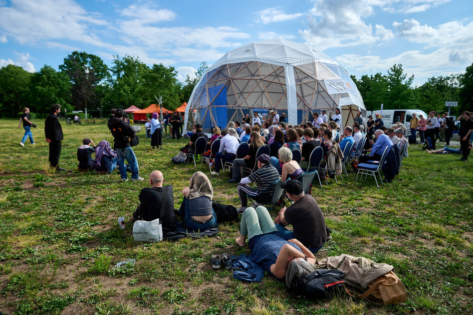 Ein Baustein dafür soll das „Parlament der Menschen“ sein, das am Wochenende auf der Reichstagswiese sein Zelt aufgeschlagen hatte. Geloste Teilnehmer:innen beraten hier über zentrale Zukunftsfragen. Das Leitmotiv dabei: „Wie drängen wir den Einfluss von Geld auf unsere Demokratie und Gesellschaft zurück?“ Thelen: „Wenn Klimaschutz gegen Profitinteressen steht, gewinnt im aktuellen System immer der Profit.“ Also soll ein „Update“ der Demokratie her – mit einem Gesellschaftsrat von unten. In den nächsten Monaten wolle man mehr Menschen gewinnen, um am 3. Oktober mit dem Parlament in die nächste Runde zu gehen.