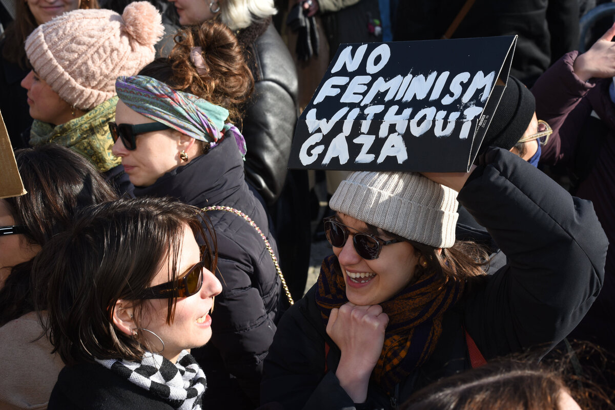 Der Nahostkonflikt spaltet die feministische Bewegung. „Im Mittelpunkt steht nicht Gaza selbst“, sagt Jannis Grimm, der an der Freien Universität zu Palästina-Solidaritätsbewegungen in Deutschland forscht. „Vielmehr kristallisieren sich entlang des Krieges grundlegende feministische Konfliktlinien heraus: Selbstbestimmung, Ausbeutung, intersektionaler Feminismus, Kolonialisierung von Körpern und Ländern sowie ein zerbröselndes Völkerrecht.“