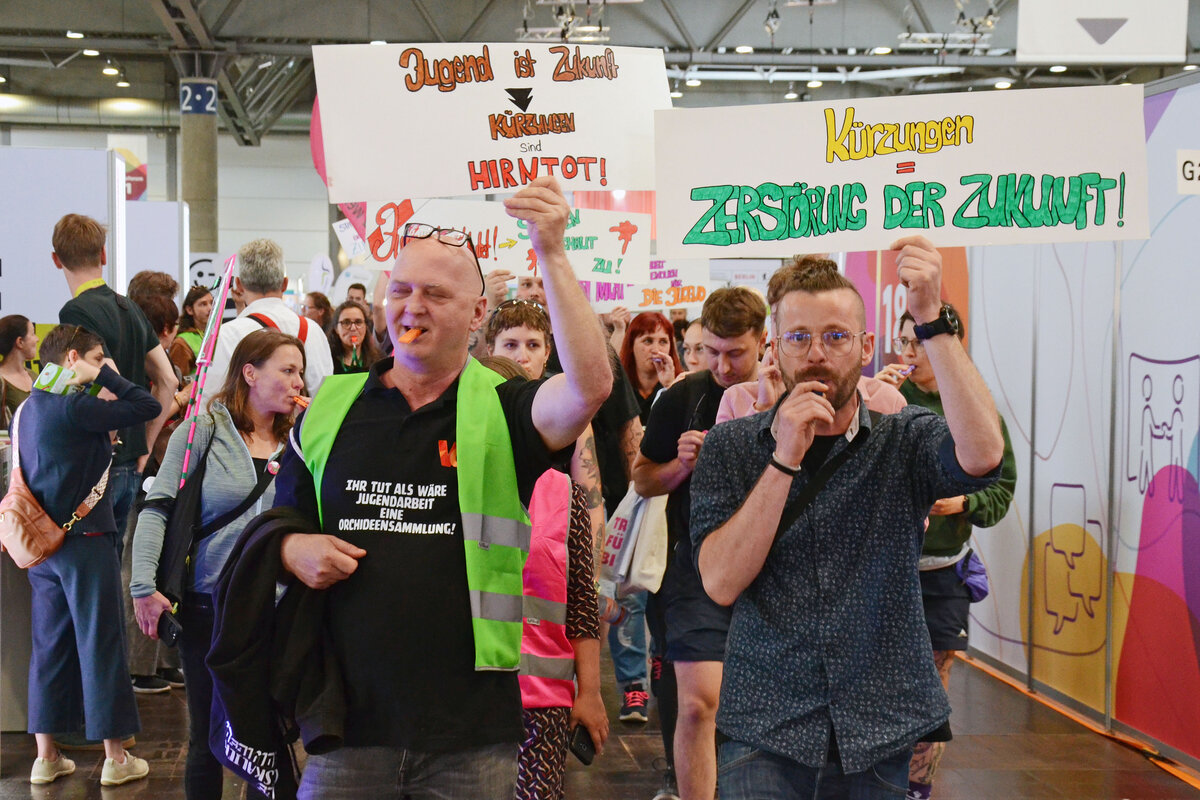 Die Demonstration auf dem Messegelände solle ein Zeichen setzen, sagt Friedrich. Jugendarbeit sei eine Pflichtaufgabe der Politik.