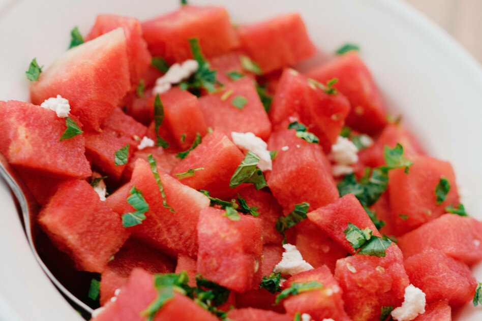 Die Wassermelone enthält überraschend wenig Zucker und macht in der Küche aus allerlei wilden Kombinationen ein rundes Gericht. Am bekanntesten sind kalte Sommersalate, zum Beispiel mit Thunfisch und Melone oder Schafskäse, Pfefferminze und etwas Krabbenfleisch. Es passen aber auch Sprossen – etwa Radieschen – und Staudensellerie. Wer zudem noch etwas frischen Ziegenkäse daheim hat, steht vor einem Hochgenuss.