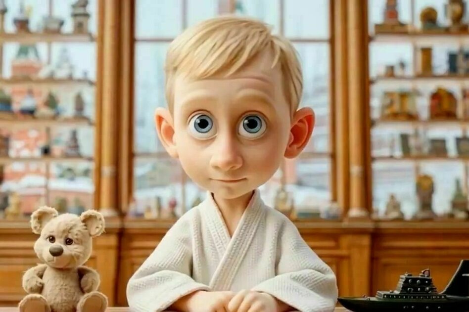 Neben sich mal Trump und Macron, mal Erdoğan und Kim, mal Xi, Merz, von der Leyen, Meloni oder Selenskyj, ebenfalls in Zeichentrickform. Die Westler stolpern herum, verheddern sich, machen sich stets zutiefst lächerlich.