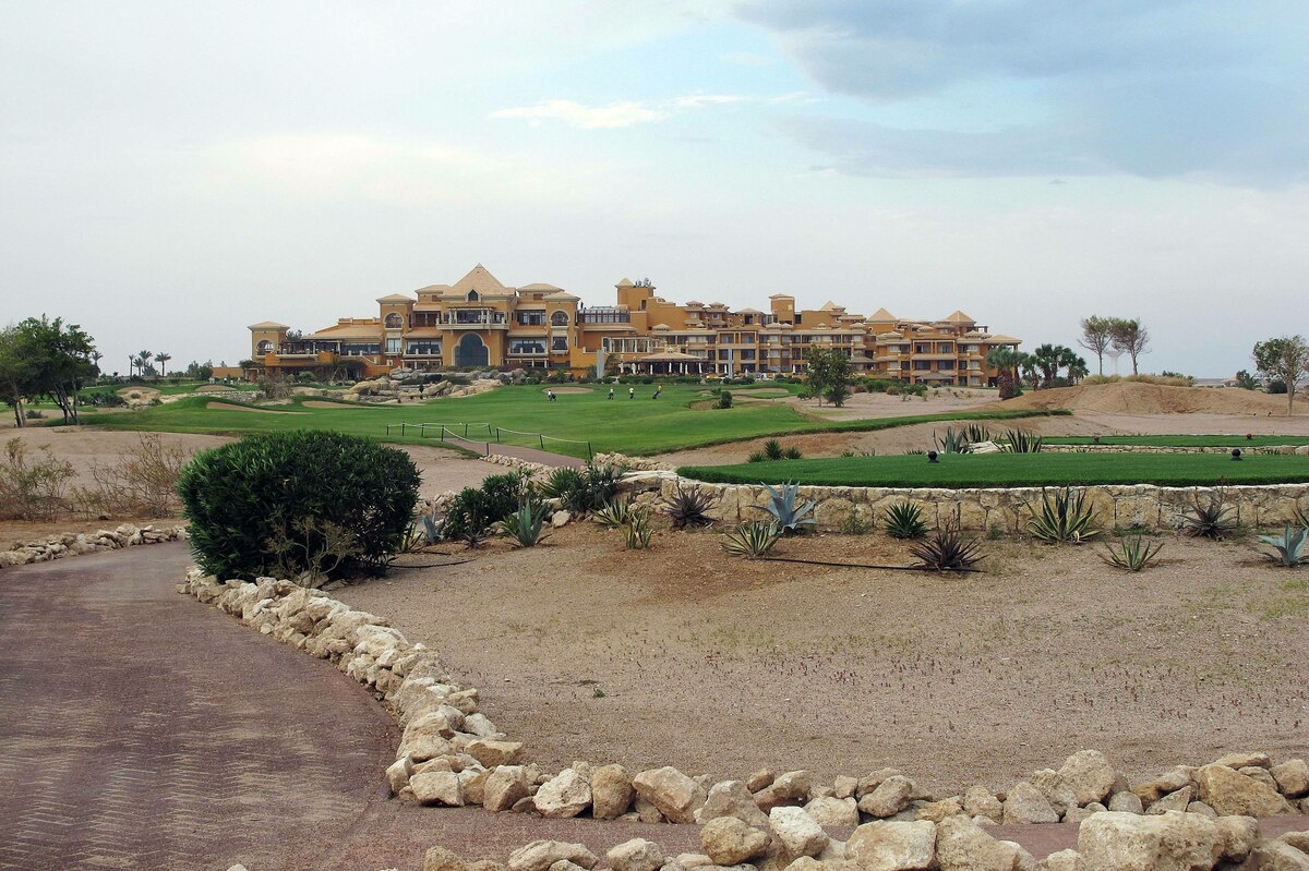 Dafür gibt es einen „Wüstenplatz vom Feinsten“. Auf dem „saftig grüne Fairways herrliche Kontraste zu beigen Sandpanoramen und der glitzernden See bilden, während sich im Hintergrund die ganze Pracht des Roten-Meer-Gebirges erhebt“. Zugabe: Der kleine Übungsplatz sei „auch bei Flutlicht spielbar“. Regen? Unbekannt, „evtl. mal 5 Min. alle 3 Monate“.