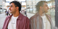 Ein Mann spiegelt sich in einer Fensterscheibe.