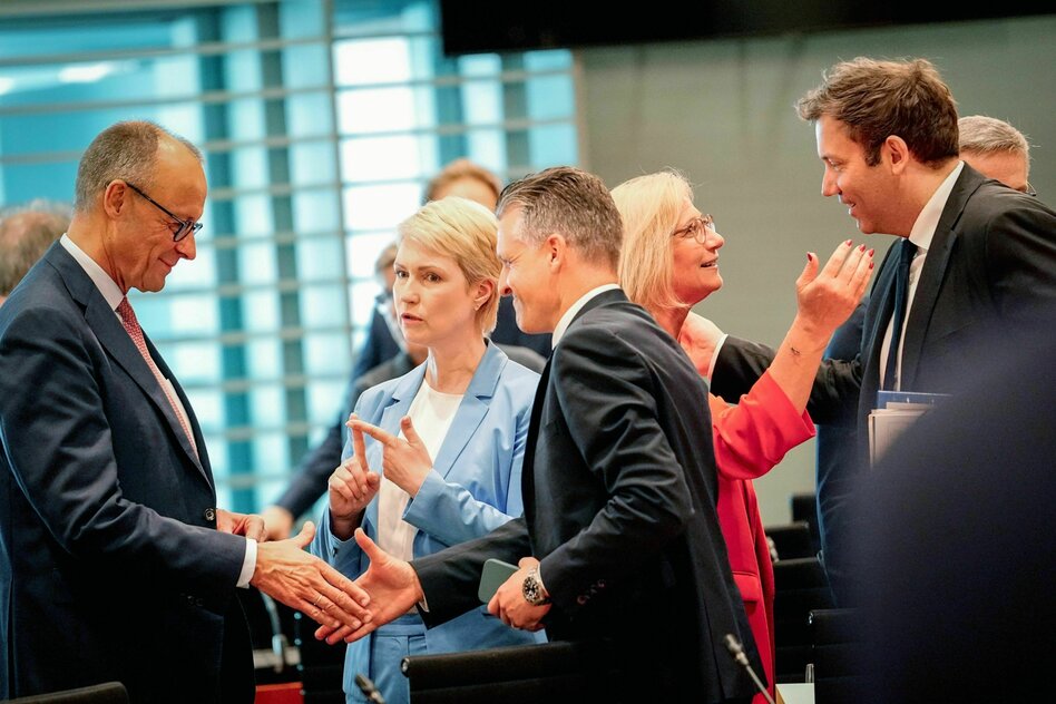 Das Entlastungspaket für Unternehmen kann nur mit Zustimmung des Bundesrats in Kraft treten. Die Länder forderten dafür eine Kompensation vom Bund für sich und die Kommunen. Der Einigung der Bund-Länder-Arbeitsgruppe zufolge soll der Einnahmeausfall für Städte und Gemeinden ausgeglichen werden, indem die Kommunen bis 2029 einen höheren Teil der Umsatzsteuer erhalten. Zudem will sich der Bund mit 250 Millionen Euro pro Jahr an Maßnahmen der Länder zur Schuldenentlastung der Kommunen beteiligen. „Die Länder werden zumindest teilweise entlastet und das in den für die Bürgerinnen und Bürger zentralen Themen Kindertagesbetreuung und Krankenhäuser“, sagte der niedersächsische Ministerpräsident Olaf Lies (SPD), der stellvertretender Vorsitzender der Konferenz der Ministerpräsident:innen ist. In diese beiden Bereiche sollen bis 2029 8 Milliarden Euro fließen, die aus dem 500 Milliarden Euro schweren Sondervermögen des Bundes für Infrastruktur kommen. Dazu will der Bund ein neues Programm für die Bildungs- und Betreuungsinfrastruktur auflegen. Außerdem soll der Bundesanteil für die Modernisierung der Krankenhäuser steigen.