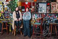 Linda Steffl und ihre Kollegin Frida Schlegel führen durch die Räume in dem unwirtlichen Gewerbegebiet an der Storkower Straße. Im zentralen Raum steht ein großer Tisch, es gibt bunt zusammengewürfelte Stühle, eine Bühne, alte Kinosessel, ein altes DJ-Pult, eine Bar, einen Proberaum für Bands, einen Büroraum und einen großen Saal. Schlegel sagt: „Es ist Fluch und Segen, dass das hier alles so groß ist. Es sammelt sich ganz schön viel Zeug an.“