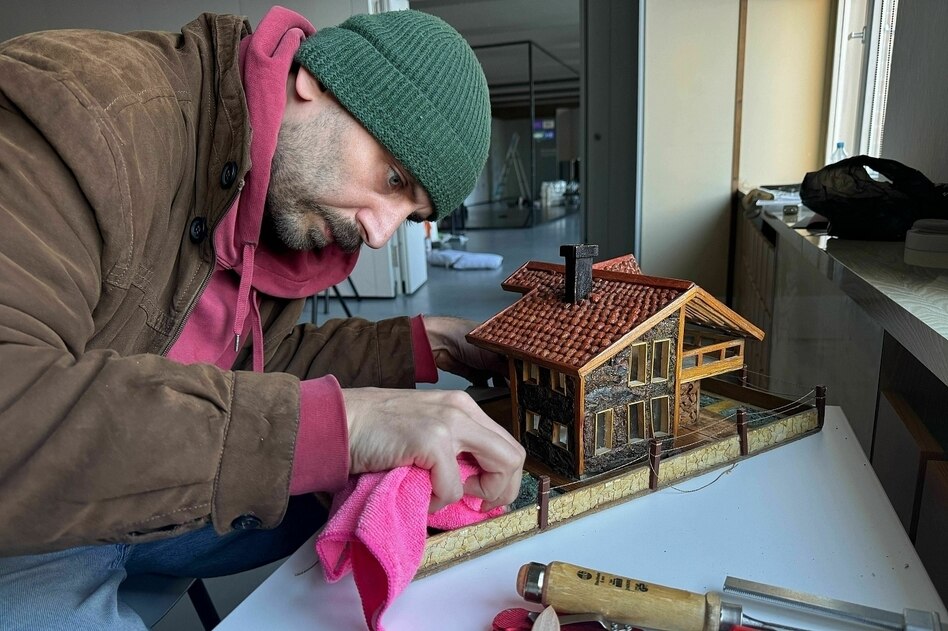 Vor dem Modellhaus steht jetzt sein Sohn Alaa Hassan, der am Tag des Presserundgangs in der Ausstellung zugegen ist. Damals bewahrte seine Familie das kleine Haus im Wohnzimmer auf, erinnert er sich: „Als Kind habe ich geträumt, dass wir alle zusammen darin wohnen.“ Neben Videoaufnahmen, in denen Überlebende von Folter, Hunger, Krankheit und Gewalt berichten, spiegelt das persönliche Archiv von Ahed Sheikh Hassan in verblichenen Familienfotos, Briefen und gepressten Blüten Momente der Hoffnung. Sie erzählen vom Glauben an Gerechtigkeit: „Wir brauchen den Widerstand“, sagt Alaa Hassan.
