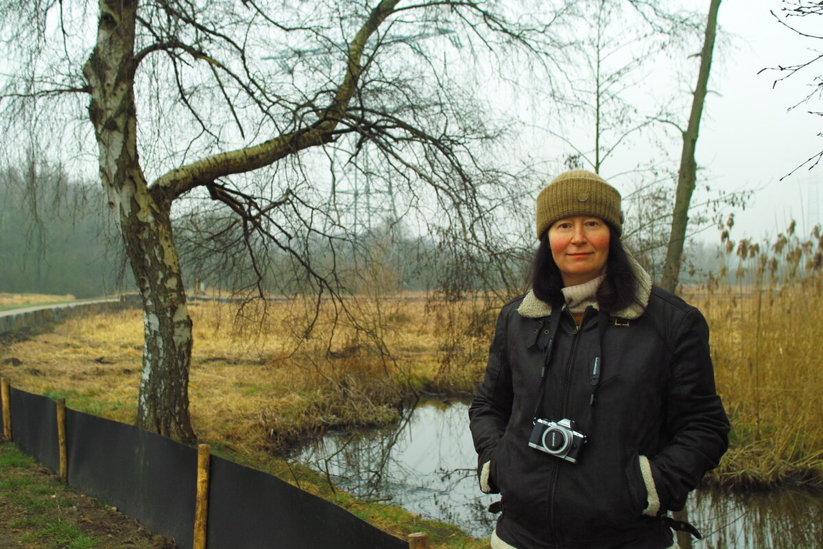 Die Biologin Wolkenhauer steht unter den Bäumen mit dem Transparent, in ihrem Rücken ein sumpfiges Wäldchen. Sie blickt auf einen etwa 50 Meter breiten Korridor, der mit Zäunen aus schwarzen Matten eingefasst ist. Es sind Krötenschutzzäune, an die in unregelmäßigen Abständen halbpyramidenförmige Rampen angebaut sind, damit Frösche und Kröten das Areal, auf dem gebaut werden soll, verlassen können.
